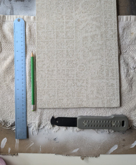 I use cement backer, such as Hardie® Backer Board, for all of my coasters and most pieces smaller than about 8" x 8". Once you get the hang of it, cutting backer board is relatively easy at home. Below are instructions for the score and snap method.