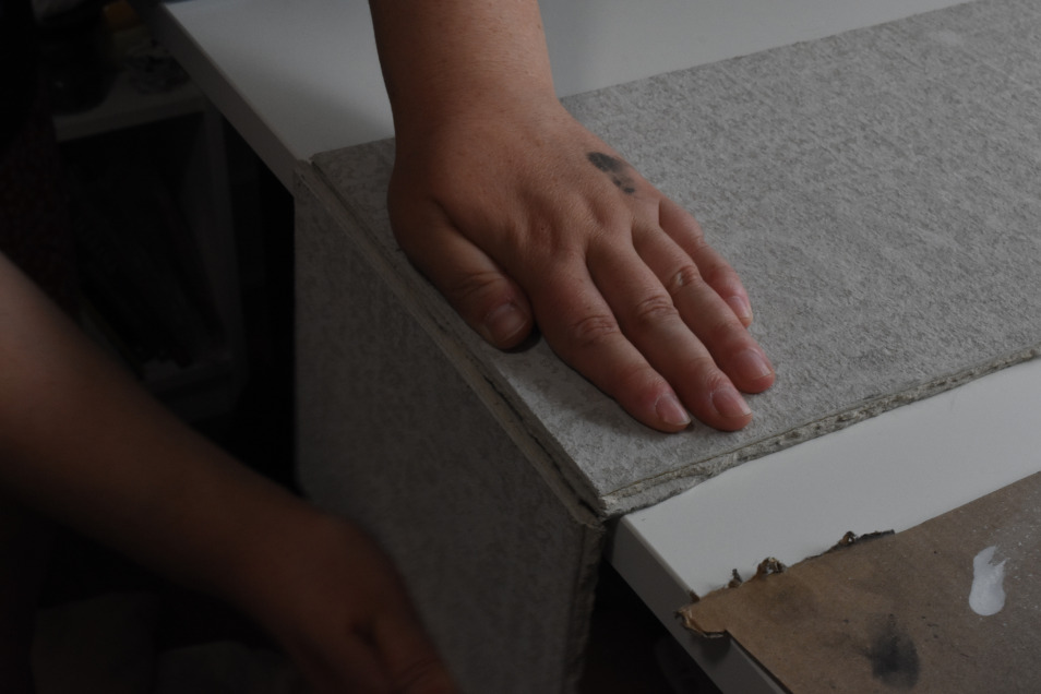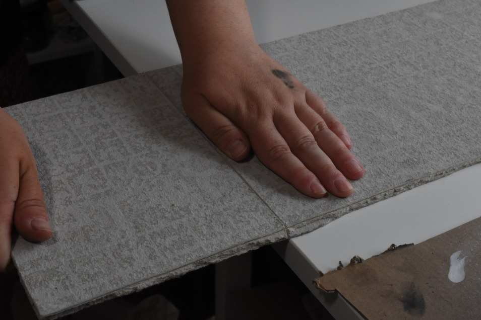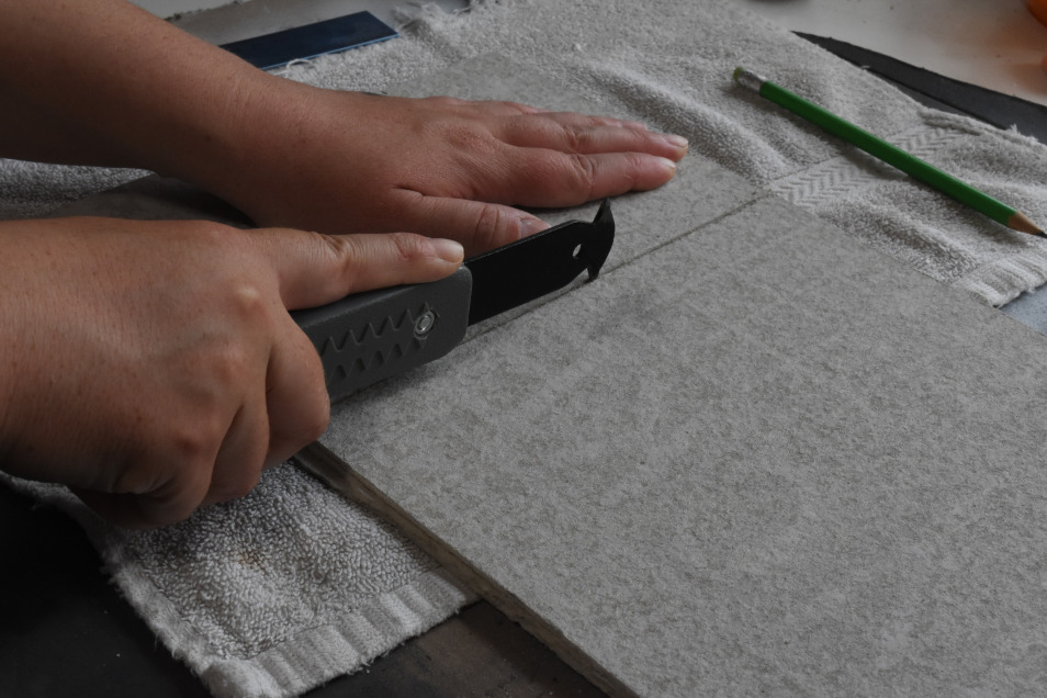 Place the backing board on the edge of your work surface with the score facing up. With one hand, hold the board to the work surface. Quickly break off the desired piece by quickly snapping downward.